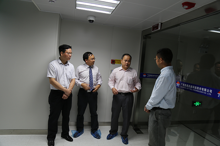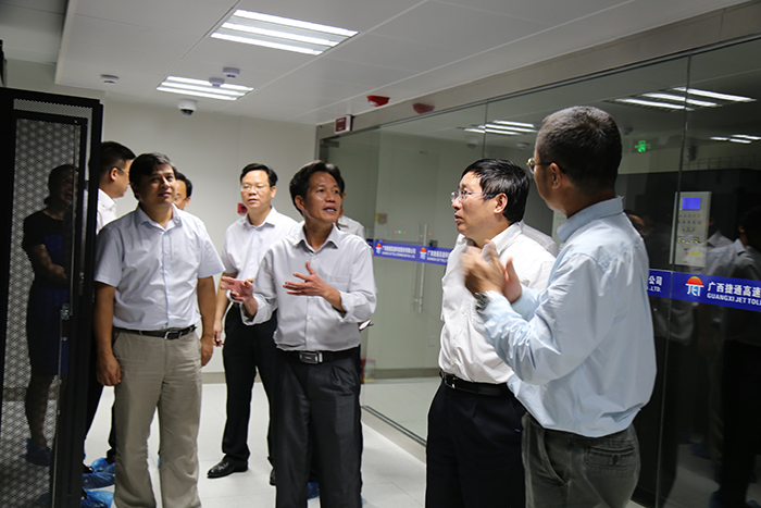 簽約儀式結(jié)束后,與會的各位領(lǐng)導共同參觀了我集團公司控股企業(yè)——廣西捷通公司ETC中心機房,并聽取了技術(shù)人員對中心系統(tǒng)建設(shè)情況、設(shè)備安裝使用情況、機房運轉(zhuǎn)流程、技術(shù)支持、監(jiān)控及操作、消防通道等情況的匯報。