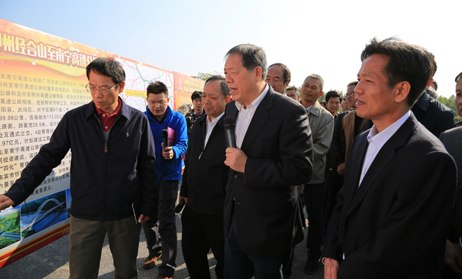 在柳州經(jīng)合山至南寧高速公路(簡稱新柳南高速公路)開工現(xiàn)場(chǎng)會(huì)主會(huì)場(chǎng)上,集團(tuán)公司黨委書記、董事長朱堅(jiān)和向自治區(qū)人民政府副主席陳剛、自治區(qū)交通運(yùn)輸廳副廳長梁毅等與會(huì)領(lǐng)導(dǎo)介紹了新柳南高速公路項(xiàng)目情況,以及集團(tuán)公司目前承建的自治區(qū)重大建設(shè)項(xiàng)目鐘山至來賓、來賓至巴馬、融水至河池等3個(gè)縣縣通高速公路項(xiàng)目建設(shè)情況,朱堅(jiān)和表示,集團(tuán)公司致力于成為自治區(qū)黨委、政府最可信賴的交通基礎(chǔ)設(shè)施投資運(yùn)營力量,全力以赴完成各重大項(xiàng)目建設(shè)任務(wù)。