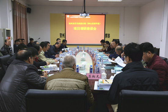 下午1時,調(diào)研組在指揮部會議室與各參建單位代表進行座談,觀看了賀州至巴馬高速公路項目建設(shè)情況等相關(guān)宣傳視頻,并聽取了項目建設(shè)情況的匯報。