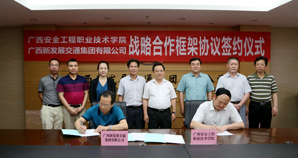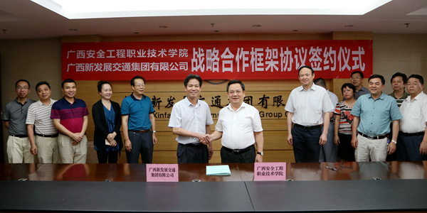 5月12日,自治區(qū)安全生產(chǎn)監(jiān)督管理局黨組書記黎志逘一行到訪集團(tuán)公司,雙方就廣西安全工程職業(yè)技術(shù)學(xué)院與廣西新發(fā)展交通集團(tuán)有限公司建立戰(zhàn)略合作伙伴關(guān)系達(dá)成共識(shí),并簽訂了戰(zhàn)略合作框架協(xié)議。