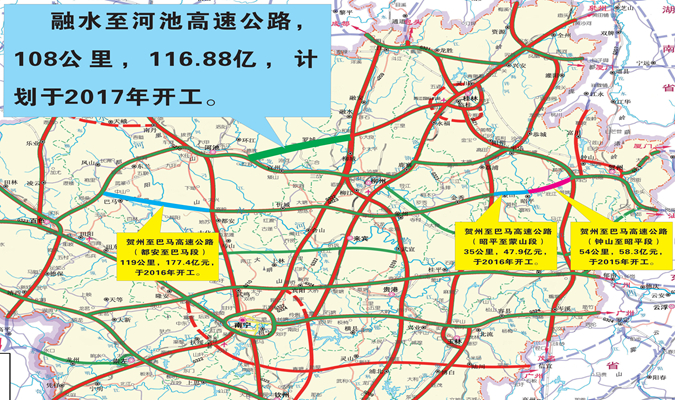 融水至河池高速公路是自治區(qū)重點(diǎn)推進(jìn)的縣縣通高速公路項(xiàng)目之一,是廣西高速公路路網(wǎng)規(guī)劃中“橫2支線”——桂林至河池高速公路的重要構(gòu)成路段。項(xiàng)目起于柳州市融安縣潭頭鄉(xiāng)紅嶺村附近,與擬建的桂林至柳城高速公路連接,并與三江至柳州高速公路相交,終于宜州市德勝鎮(zhèn)全村附近,與宜州至河池高速公路相接。主線全長(zhǎng)約108公里,設(shè)計(jì)車速100公里/小時(shí),路基寬度 26米,采用雙向四車道高速公路標(biāo)準(zhǔn)。項(xiàng)目采用“區(qū)市共建”模式建設(shè),總投資估算116.88億元,計(jì)劃于2021年12月建成通車。項(xiàng)目建成后,將結(jié)束羅城縣不通高速公路的歷史,公路網(wǎng)絡(luò)互聯(lián)互通將更加完善,公路沿線群眾出行將更加快捷,沿線市、縣、鎮(zhèn)、鄉(xiāng)的旅游產(chǎn)業(yè)、經(jīng)濟(jì)發(fā)展以及扶貧攻堅(jiān)事業(yè)將得到極大的促進(jìn)。