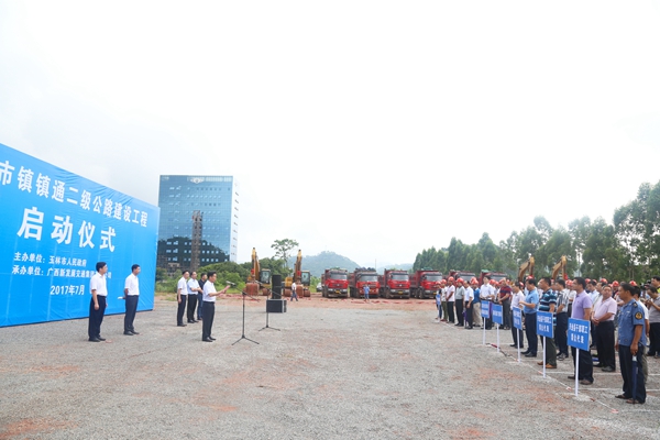 玉林市交通運(yùn)輸局局長何東真主持儀式。玉林市市交運(yùn)局、發(fā)改委、住建委、國土局、林業(yè)局等相關(guān)部門負(fù)責(zé)人,各縣(市、區(qū))政府分管交通工作有關(guān)部門負(fù)責(zé)人、興業(yè)縣干群代表以及新發(fā)展集團(tuán)下屬企業(yè)代表參加了啟動(dòng)儀式。(陳福喜 文/圖)