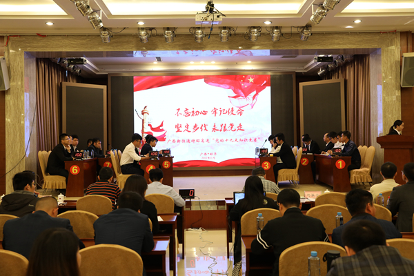11月15日,新恒通公司賀巴高速(都安至巴馬段)建設(shè)指揮部黨支部組織開展“學習十九大,共筑中國夢”朗讀者比賽,弘揚主旋律,傳遞正能量。八位朗讀者用聲音表達了愛黨愛國的政治情懷。