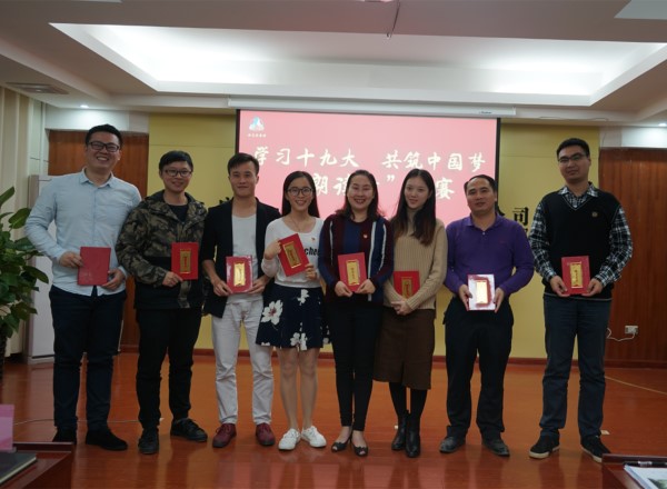 比賽產(chǎn)生一等獎一名,二等獎兩名,三等獎五名,公司副總經(jīng)理、指揮部指揮長、黨支部書記陸原恩為獲獎者頒發(fā)了榮譽證書和黨的十九大相關(guān)學習書籍。