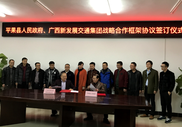 12月13日,集團公司與平果縣人民政府簽訂戰(zhàn)略合作框架協(xié)議,謀劃推動更多與平果縣相關的項目納入自治區(qū)和國家層面重大項目盤子,推動平果縣基礎設施建設,進一步提升平果縣經濟社會發(fā)展水平。