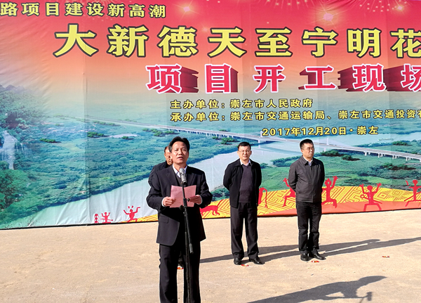 12月20日,崇左市大新德天至寧明花山公路舉行開工儀式,集團公司黨委書記、董事長朱堅和,集團公司黨委副書記、副董事長、總經(jīng)理唐咸秋,路橋工程集團及設(shè)計院有限公司相關(guān)負責(zé)人參加了開工儀式。