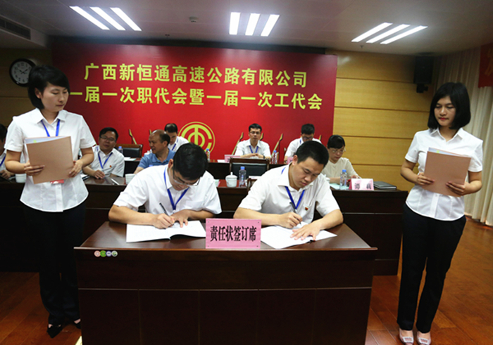 4月4日上午,新恒通公司一屆一次職代會(huì)暨一屆一次工代會(huì)勝利召開(kāi)。會(huì)議全面貫徹落實(shí)黨的十九大及全國(guó)、全區(qū)交通工作會(huì)議和集團(tuán)公司2018年工作會(huì)議精神,全面總結(jié)公司成立三年來(lái)的工作,明確和部署2018年各項(xiàng)重點(diǎn)工作,共謀公司發(fā)展大計(jì),為奮力開(kāi)創(chuàng)新時(shí)代“縣縣通”高速公路建設(shè)事業(yè)新局面而努力奮斗。集團(tuán)公司領(lǐng)導(dǎo)出席會(huì)議并發(fā)表講話,集團(tuán)公司派駐監(jiān)事會(huì)成員、41名正式代表、3名列席代表參加會(huì)議。公司黨委副書記、工會(huì)主席梁波主持會(huì)議。