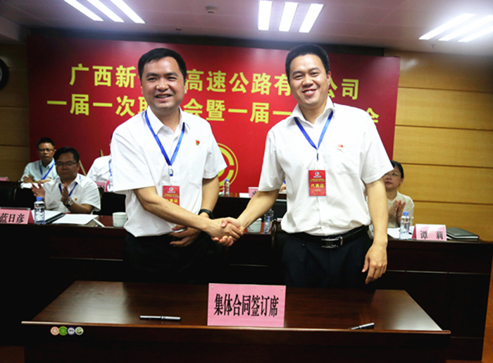 會(huì)上,公司黨委書記、董事長(zhǎng)賴水平向大會(huì)作了題為《不忘初心,牢記使命,勇于擔(dān)當(dāng),敢挑重?fù)?dān),奮力開(kāi)創(chuàng)新時(shí)代“縣縣通”高速公路建設(shè)事業(yè)新局面》的工作報(bào)告。報(bào)告從六個(gè)方面全面回顧了公司成立三年來(lái)的工作亮點(diǎn):一是制定了《廣西新恒通高速公路有限公司“十三五”發(fā)展戰(zhàn)略和規(guī)劃綱要》,明確了發(fā)展定位和發(fā)展目標(biāo) ;二是基本建立現(xiàn)代法人治理結(jié)構(gòu)體系;三是組織機(jī)構(gòu)不斷健全,基礎(chǔ)管理制度不斷完善,職工隊(duì)伍不斷壯大,管理水平和管理能力不斷提高;四是“區(qū)市共建”模式和EPC模式的推行取得了突破性進(jìn)展;五是公司承接的高速公路建設(shè)進(jìn)入了快車道;六是黨建工作開(kāi)創(chuàng)了新局面,黨風(fēng)廉政建設(shè)扎實(shí)推進(jìn)。報(bào)告指出,2017年在集團(tuán)公司的正確領(lǐng)導(dǎo)和大力支持下,公司超額完成年度投資目標(biāo)任務(wù),公司各項(xiàng)管理工作不斷取得新進(jìn)展和新成效,在集團(tuán)公司2017年度工作檢查考核評(píng)比中取得第五名的好成績(jī),公司工會(huì)工作在2017年全區(qū)工會(huì)工作目標(biāo)考核評(píng)比中榮獲三等獎(jiǎng)。2018年是貫徹落實(shí)黨的十九大精神的開(kāi)局之年,是改革開(kāi)放40周年,是建設(shè)“交通強(qiáng)國(guó)”新征程的起步之年,展望 2018年全國(guó)高速公路發(fā)展形勢(shì),報(bào)告提出了2018年年度投資目標(biāo)任務(wù):完成高速公路投資73.1億元,任務(wù)艱巨,責(zé)任重大,使命光榮,要緊緊圍繞這個(gè)中心任務(wù),從八個(gè)方面狠抓落實(shí):一是進(jìn)一步加強(qiáng)和完善企業(yè)法人治理結(jié)構(gòu),堅(jiān)持依法治企;二是進(jìn)一步推行EPC模式和“區(qū)市共建模式”;三是進(jìn)一步加快推進(jìn)項(xiàng)目前期工作;四是進(jìn)一步解決建設(shè)資金保障問(wèn)題;五是進(jìn)一步推進(jìn)“品質(zhì)工程、綠色公路”創(chuàng)建活動(dòng);六是進(jìn)一步抓好安全生產(chǎn)管理;七是積極謀劃項(xiàng)目建成后的運(yùn)營(yíng)管理和沿線土地、旅游等資源的開(kāi)發(fā);八是以黨的十九大精神為引領(lǐng),進(jìn)一步加強(qiáng)黨的建設(shè)和黨風(fēng)廉政建設(shè)。