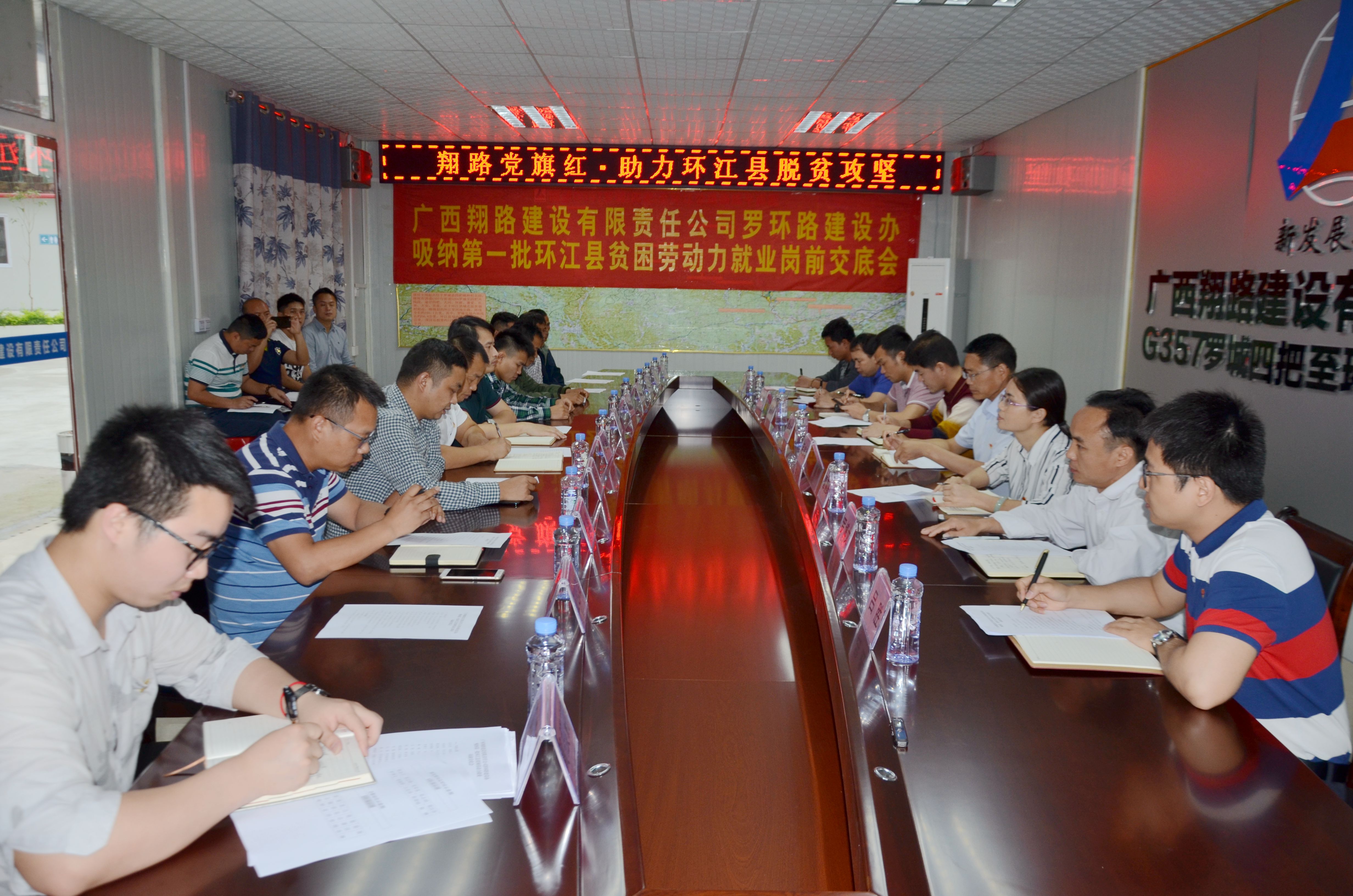 5月9日,廣西新發(fā)展交通集團(tuán)翔路公司在羅環(huán)路召開吸納環(huán)江縣貧困勞動(dòng)力就業(yè)崗前交底會(huì),第一批5名貧困勞動(dòng)力正式上崗,安排到該公司路網(wǎng)項(xiàng)目就業(yè)。經(jīng)過前期大量充分細(xì)致的調(diào)研準(zhǔn)備工作后,廣西新發(fā)展集團(tuán)路網(wǎng)項(xiàng)目“黨建+就業(yè)扶貧”工作取得了階段性成果,惠及環(huán)江貧困勞動(dòng)力。