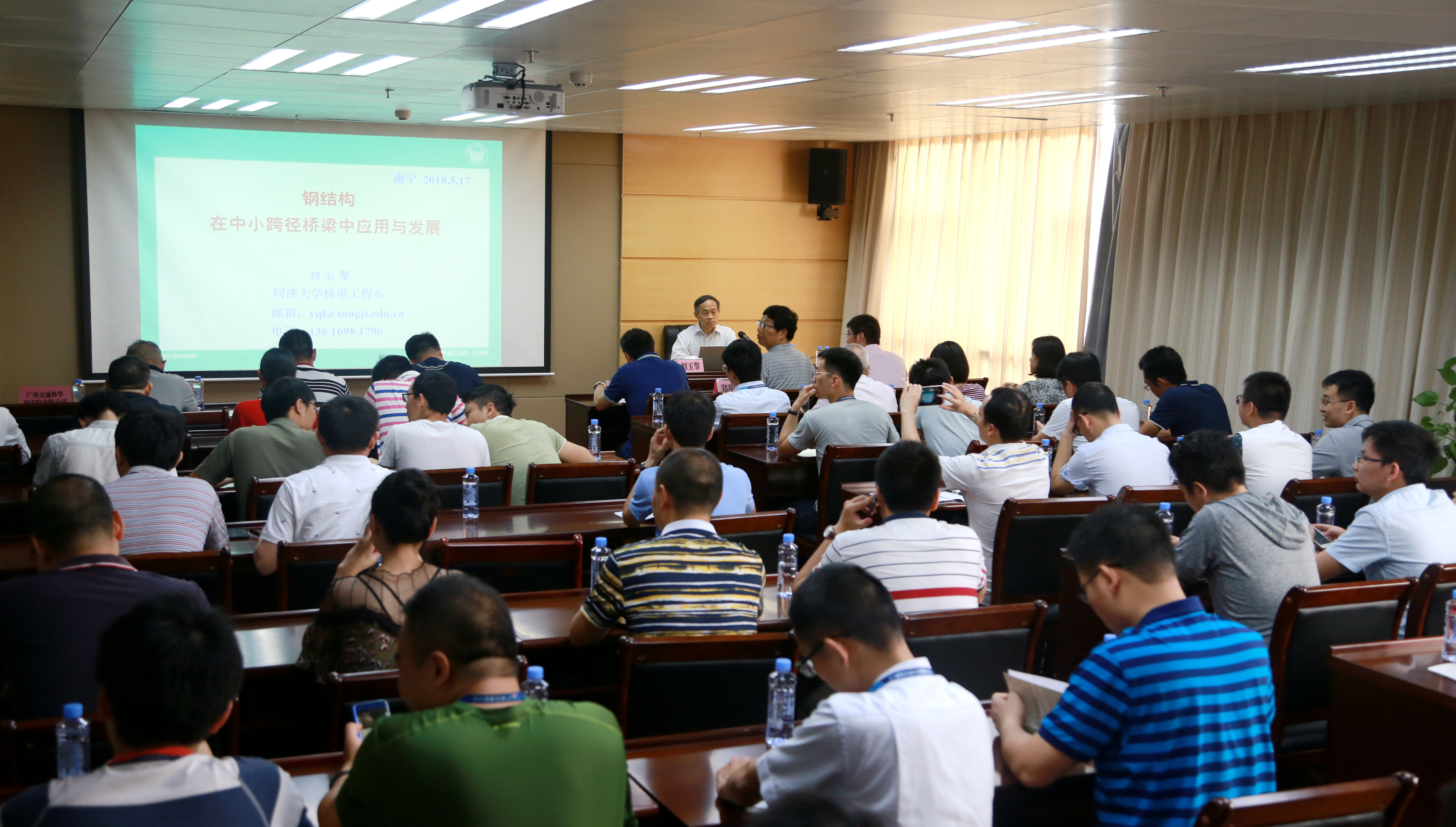 5月17日上午,集團公司博士后科研工作站邀請合作流動站同濟大學橋梁工程系教授、博士生導師劉玉擎到集團公司授課,講解鋼結(jié)構(gòu)在中小跨徑橋梁中的應用及發(fā)展歷程。集團公司總工程師覃炳賢、首席專家鄭明德及直屬企業(yè)技術(shù)骨干共72人參加了講座。