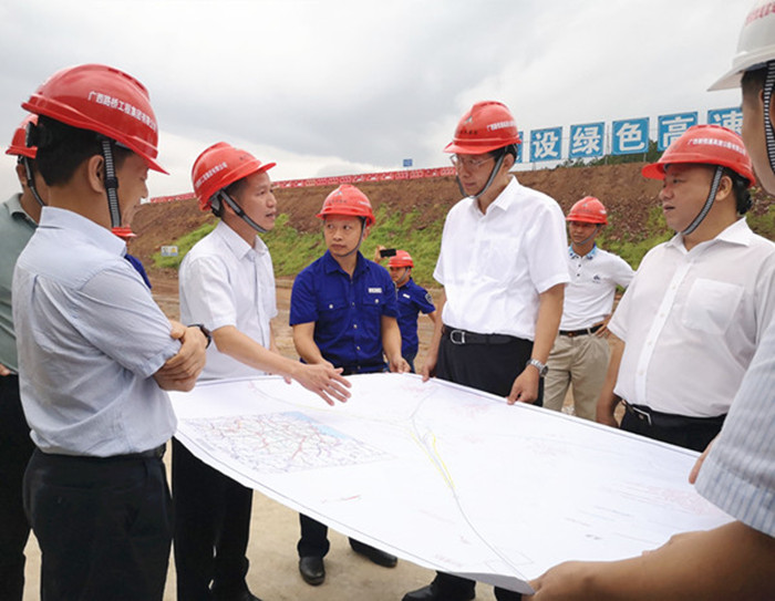 7月13日下午,自治區(qū)副主席費志榮到賀巴高速鐘昭段同古互通調(diào)研,賀州市市長林冠,自治區(qū)工業(yè)和信息化委巡視員彭健銘、自治區(qū)交通運輸廳副廳長王劼耘等同志隨行調(diào)研。集團公司黨委書記、董事長朱堅和,集團公司副總經(jīng)理李德智,新恒通公司領導藍日彥、馮學茂等陪同。
