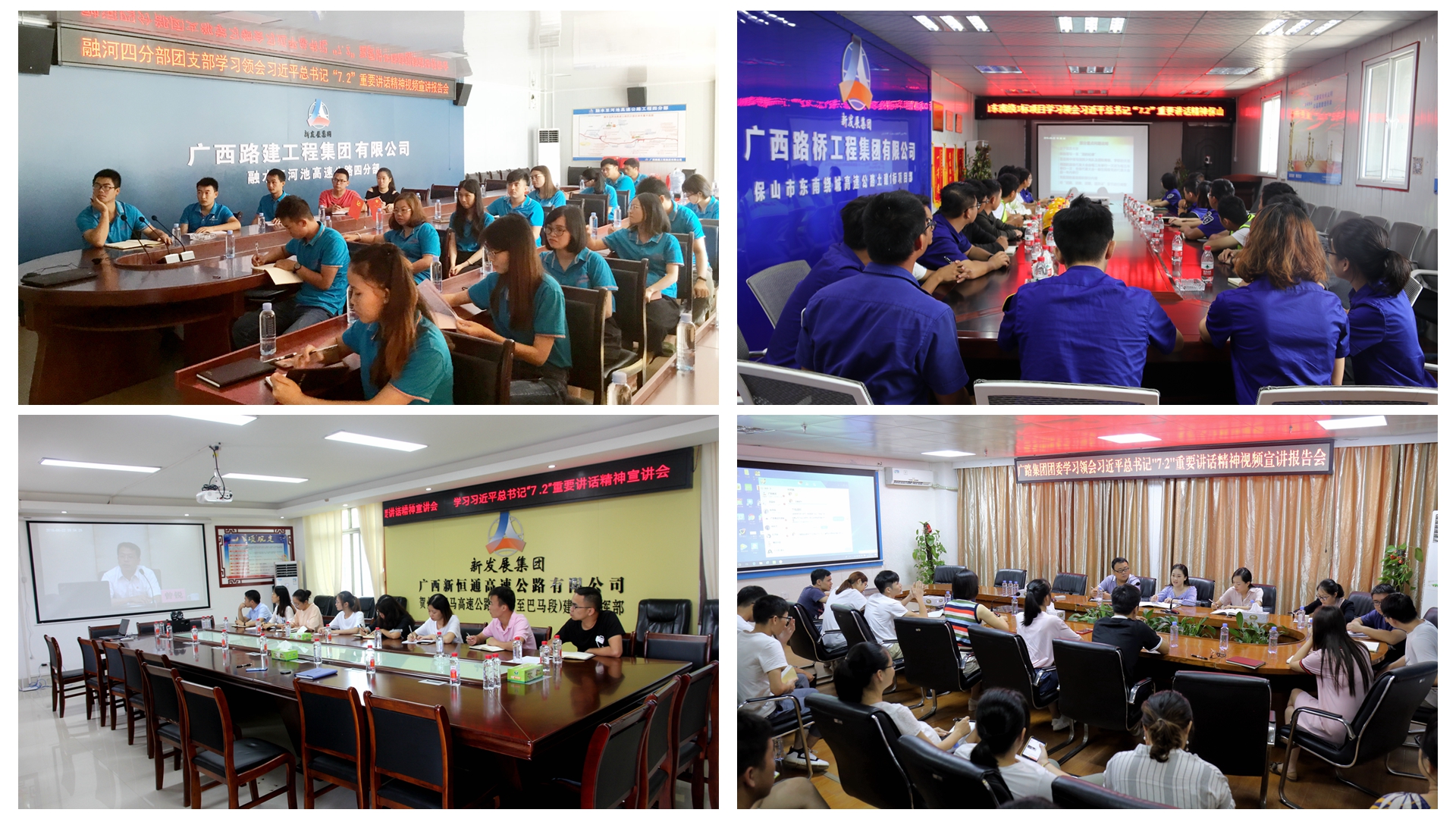 8月22日,集團公司團委組織總部、交通設(shè)計公司、翔路公司、小額貸公司、捷通公司、交通一卡通公司青年團員集中觀看團中央關(guān)于“學習領(lǐng)會習近平總書記‘7.2’重要講話精神視頻宣講報告會”直播視頻。廣西路橋、廣西路建、交通設(shè)計公司、交科院公司、廣路實業(yè)、翔路公司、新恒通公司、桂通公司等相應組織生產(chǎn)一線的各級團組織收看直播活動。經(jīng)統(tǒng)計,有109個團組織共組織了127場集中收看活動,1652名團員青年集中收看報告會直播。