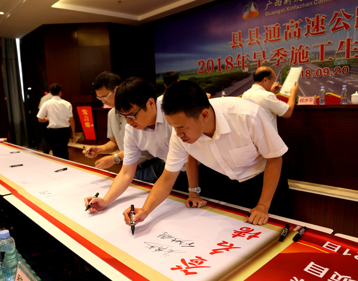 9月20日下午,廣西新發(fā)展交通集團(tuán)縣縣通高速公路項(xiàng)目2018年旱季施工生產(chǎn)推進(jìn)大會(huì)在融河高速順利召開(kāi)。廣西北部灣投資集團(tuán)有限公司有關(guān)領(lǐng)導(dǎo)出席會(huì)議,廣西新恒通高速公路有限公司及各參建單位主要領(lǐng)導(dǎo),鐘昭、昭蒙、蒙象、都巴、融河等項(xiàng)目施工建設(shè)人員代表130余人參加會(huì)議。