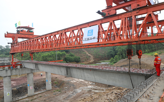 本次架設(shè)箱梁的為那隆互通主線橋,位于靈山段那隆鎮(zhèn)主線K72+709.5-K72+806.5處。該橋全長97米,共3跨,每跨30米,上部構(gòu)造為先簡支后連續(xù)結(jié)構(gòu),設(shè)計雙向四車道。為保障本次架設(shè)工作順利進(jìn)行,大浦公司周密部署,采取多項有效措施:一是結(jié)合項目特點,貫徹北投集團(tuán)和新發(fā)展集團(tuán)高速公路項目建設(shè)推進(jìn)會精神,會同總監(jiān)辦、施工單位提前進(jìn)行技術(shù)交底,確定架設(shè)方案;二是積極動員,科學(xué)部署當(dāng)日各項環(huán)節(jié)和作業(yè)流程;三是加強(qiáng)管控,現(xiàn)場派人進(jìn)行監(jiān)督指導(dǎo)。在做好充分準(zhǔn)備的情況下,大浦路全線首片箱梁成功完成架設(shè)。