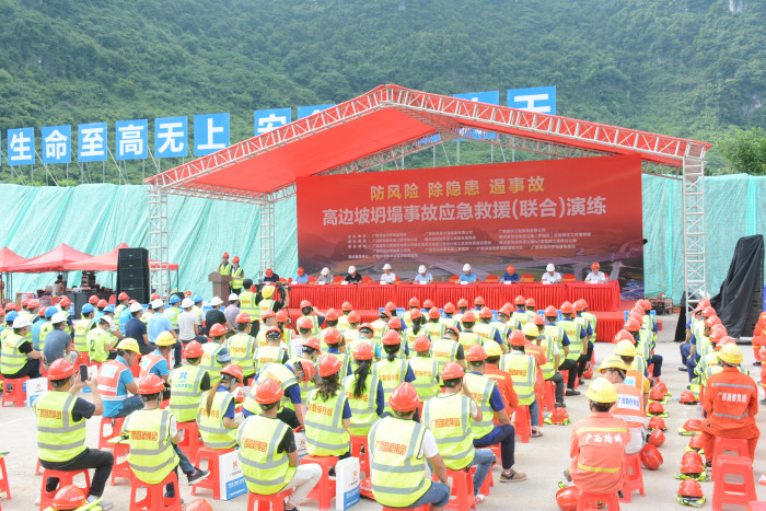 作為“防風(fēng)險 除隱患 遏事故”主題“安全生產(chǎn)月”活動內(nèi)容之一,該演練結(jié)合融水至河池高速公路項目施工中存在的高邊坡坍塌重大危險源的特點,旨在加強參建人員安全防范意識,提高安全應(yīng)急處置、救援能力。