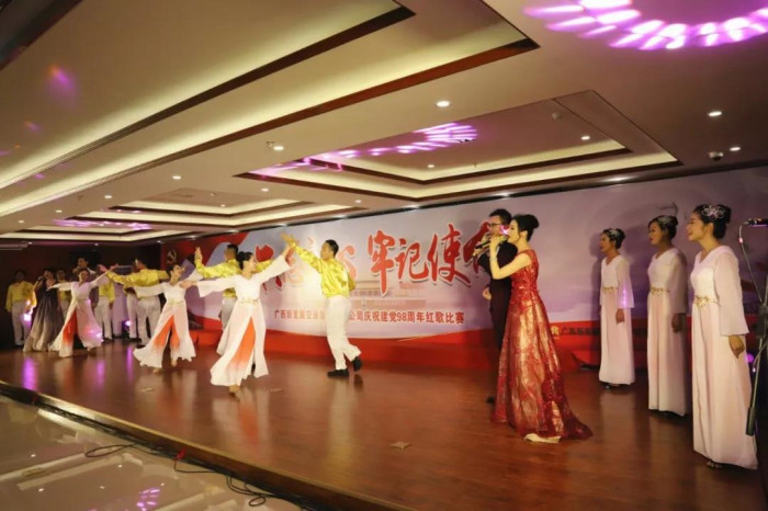 來自新發(fā)展集團(tuán)本部,各直屬單位、指揮部的11支代表隊(duì)歡聚一堂,用滿腔熱情唱響紅色旋律,歌頌黨的恩情,獻(xiàn)禮建黨98華誕。其中,新發(fā)展集團(tuán)本部吟唱余音渺渺的《愛國歌》,用現(xiàn)代舞和朗誦的形式表現(xiàn)個人與祖國血脈相連、風(fēng)雨同當(dāng)?shù)那殂?,最終拔得頭籌;欽北改擴(kuò)建指揮部、人防設(shè)計(jì)院緊緊結(jié)合“不忘初心、牢記使命”主題教育的根本遵循,分別合唱《不忘初心》《走向復(fù)興》兩首曲目,并做到演唱連貫、節(jié)奏鮮明、情緒準(zhǔn)確,分別獲得二等獎;大浦公司、融河高速指揮部、鐘昭高速指揮部則在確保歌曲的完整度、準(zhǔn)確度、協(xié)調(diào)度的同時,在服裝、隊(duì)形、伴奏上別出心裁,最終獲得三等獎;其余隊(duì)伍也各具特色,使所選紅歌綻放出燦爛的光彩,展現(xiàn)出新發(fā)展集團(tuán)奮斗拼搏的精神面貌。