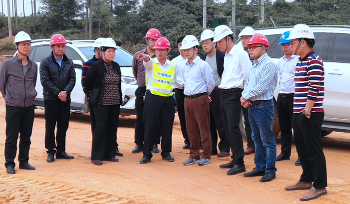 王劼耘一行先后來(lái)到大浦路項(xiàng)目紅坭嶺大橋、平陸運(yùn)河特大橋、陸屋互通樞紐、黎欽鐵路分離式立交橋進(jìn)行視察,了解了項(xiàng)目建設(shè)、征遷的總體情況及存在的突出問(wèn)題,并在項(xiàng)目現(xiàn)場(chǎng)召開(kāi)會(huì)議。會(huì)上,王劼耘對(duì)欽州市及靈山縣政府在項(xiàng)目拆遷方面所做的努力給予高度肯定,并就當(dāng)前項(xiàng)目建設(shè)提出了幾點(diǎn)要求:一是大浦高速2020年底建成通車(chē)是自治區(qū)黨委、政府的重大戰(zhàn)略決策,各參建單位一定要提高政治站位、高度重視、統(tǒng)一思想,下定決心,咬定通車(chē)目標(biāo)不放松,搶抓旱季施工大干快上;二是中建股份下屬各參建單位要履行央企擔(dān)當(dāng),倒排工期計(jì)劃,采取切實(shí)有效措施,加大人力和機(jī)械設(shè)備的投入,爭(zhēng)分奪秒確保節(jié)點(diǎn)工作按時(shí)完成;三是要加快完成剩余的房屋、桿線(xiàn)拆遷工作,為項(xiàng)目施工提供更好地趕工條件,給項(xiàng)目實(shí)現(xiàn)如期通車(chē)奠定堅(jiān)實(shí)基礎(chǔ);四是在確保工程進(jìn)度的同時(shí),要高度重視施工安全和工程質(zhì)量,加強(qiáng)安全生產(chǎn)管理及宣傳教育,確保春節(jié)期間途徑項(xiàng)目轄區(qū)的工地安全,方便群眾出行。
