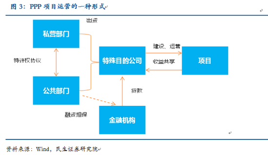 PPP模式(Public-Private-Partnership,即“公共部門-私人企業(yè)-合作”的模式)指的是公共部門通過與私人部門建立伙伴關(guān)系,共同提供公共產(chǎn)品或服務(wù),是20世紀(jì)90年代后出現(xiàn)的一種新的融資模式。 PPP模式的一個(gè)典型結(jié)構(gòu)是公共部門與中標(biāo)單位組成的特殊目的公司簽訂特許合同,由特殊目的公司負(fù)責(zé)融資、建設(shè)及經(jīng)營。這種融資形式的實(shí)質(zhì)是政府通過給予私營公司長期的特許經(jīng)營權(quán)和收益權(quán)來換取基礎(chǔ)設(shè)施建設(shè),以解決政府的財(cái)政困境。 ![]()