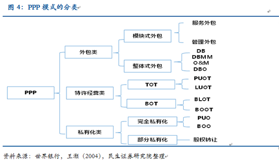 從廣義上來說,PPP指的是企業(yè)參與提供傳統(tǒng)上由政府獨(dú)自提供的公共產(chǎn)品或服務(wù)的模式。從世界銀行對(duì)PPP的分類來看,主要包括外包類、特許經(jīng)營類和私有化類。因此,BOT本質(zhì)上也可視為是PPP的一種。 ![]()