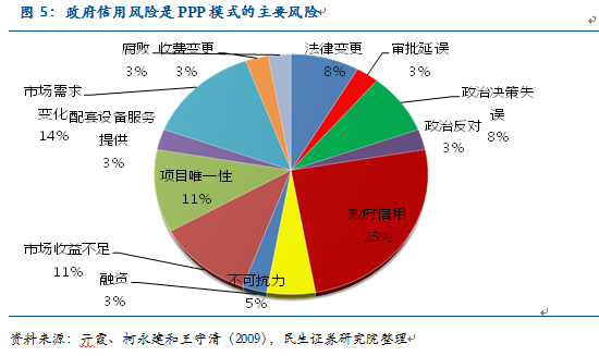 6、項(xiàng)目收益無保障。一些PPP項(xiàng)目建成后,政府或其他投資人新建、改建其他項(xiàng)目,與該項(xiàng)目形成實(shí)質(zhì)性競(jìng)爭(zhēng),損害其利益。在杭州灣跨海大橋建設(shè)未滿兩年時(shí),相隔僅五十公里左右的紹興杭州灣大橋已準(zhǔn)備開工,與杭州灣跨海大橋形成直接商業(yè)競(jìng)爭(zhēng)。此外,政府對(duì)一些PPP項(xiàng)目承諾特定原因造成的虧損進(jìn)行補(bǔ)貼,但補(bǔ)貼額度與方法無具體規(guī)定。 在這些缺點(diǎn)當(dāng)中,政府信用風(fēng)險(xiǎn)是最主要的風(fēng)險(xiǎn)。主要源于某些地方政府官員為了提升政績(jī),在短期利益的驅(qū)使下,通過過高的固定投資回報(bào)率,過高的收費(fèi)標(biāo)準(zhǔn),過長的特許經(jīng)營期以吸引民營資本,但最終又因公共機(jī)構(gòu)缺乏承受能力,產(chǎn)生信用風(fēng)險(xiǎn)。 ![]()